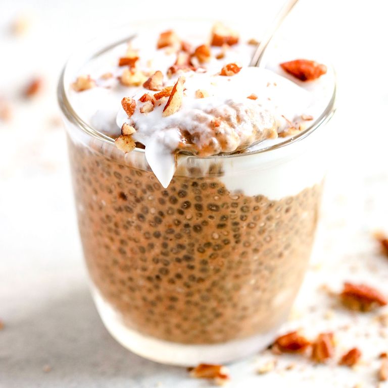 Prepara esa especia de calabaza. Otra opción fácil de preparar, este pudín de chía con sabor otoñal proporciona omega-3 a base de plantas y mucha fibra.