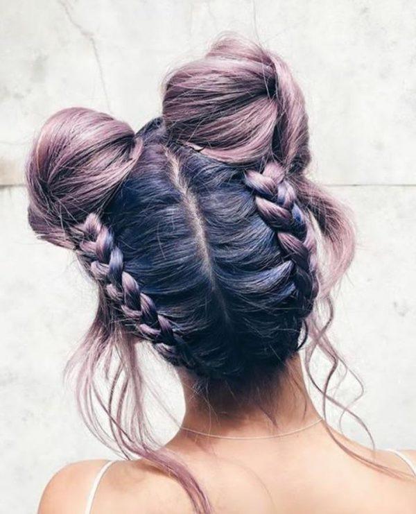 Aquí hay otra imagen que muestra una trenza holandesa inversa y bollos de cola de cerdo. Este lindo peinado puede ayudar fácilmente a que la cara se vea más grande y a la vez añadir altura a la cabeza. Es perfecto para un día casual con amigos y se puede lograr en menos de 20 minutos.