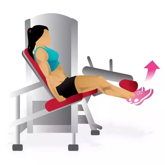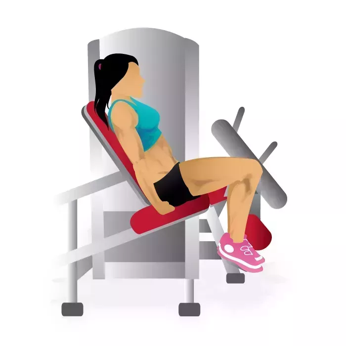 - Presiona lentamente el peso de la máquina con las piernas para alejarlas. (No olvides respirar correctamente)
