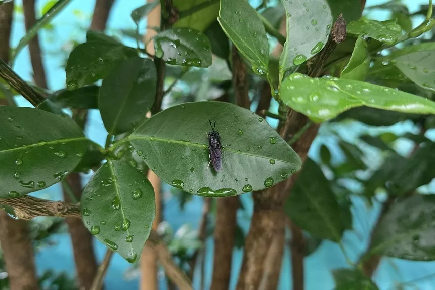 El insecto podría ser la mosca soldado negra. Es inofensivo y se cría comúnmente en Singapur, ya que sus larvas se utilizan para compostar residuos de alimentos y plantas. Las larvas también se utilizan para alimentar ganado, ya que tienen un alto contenido de proteínas.
