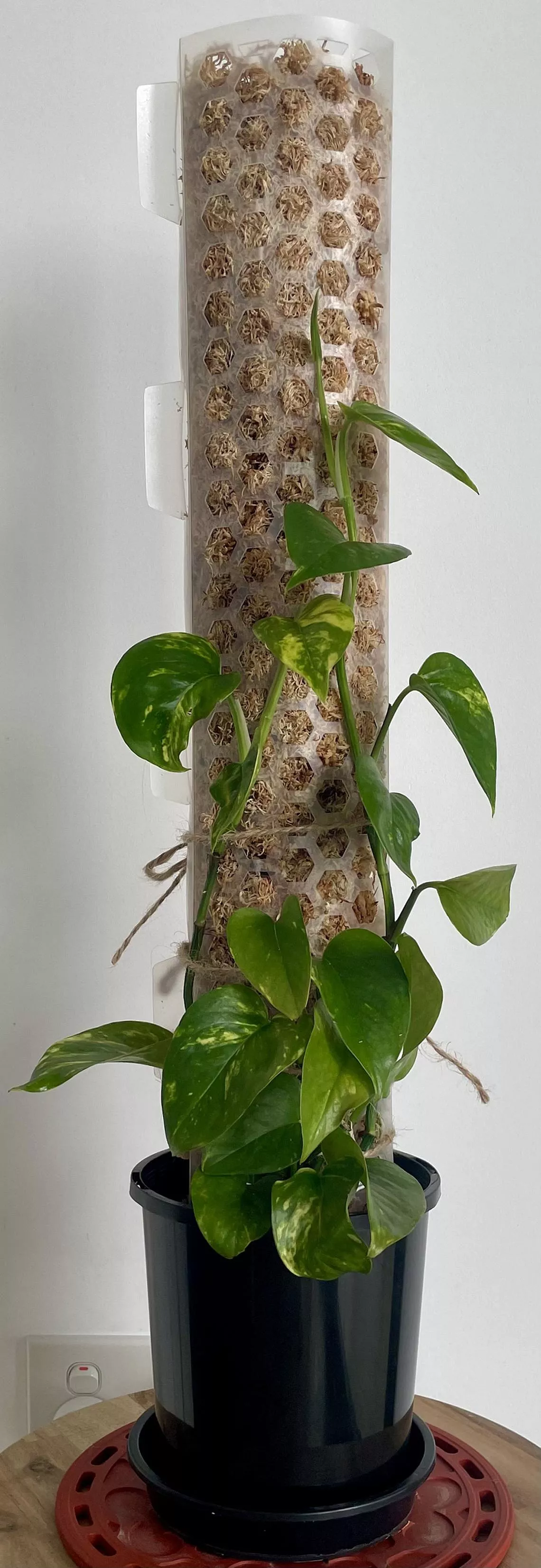 Plantar más esquejes logrará un aspecto más arbustivo. Mi pothos ha estado creciendo más alto en su poste de musgo sphagnum. ¿Cómo puedo fomentar un crecimiento más arbustivo? Además, creo que hay algas creciendo dentro del musgo. ¿Esto dañará la planta?