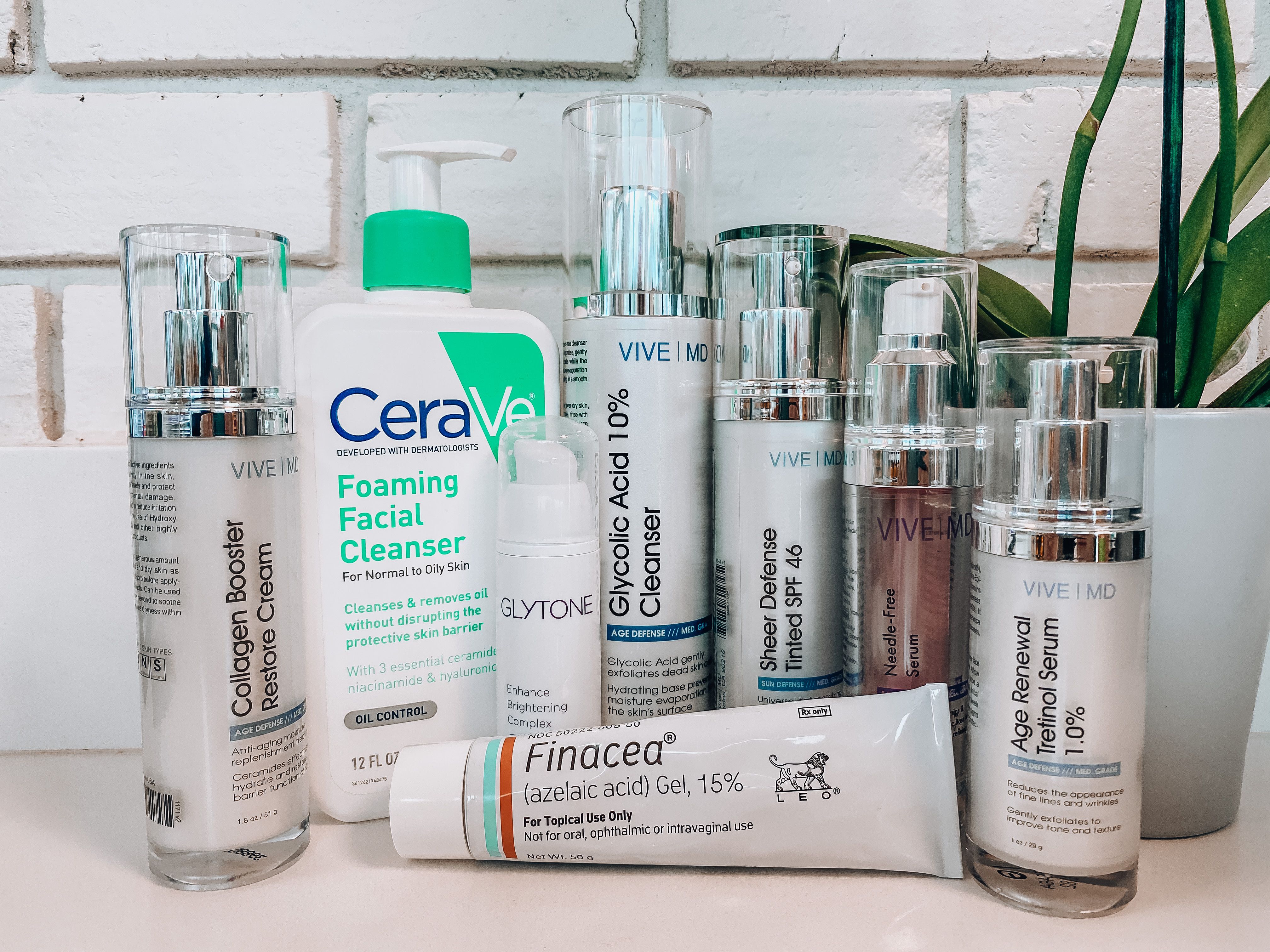 Su protector solar es ideal para los tonos de piel más oscuros."Mi SPF, VIVE MD HA Shield Tinted SPF 44, es un bloqueador físico. Tiene óxido de zinc, dióxido de titanio y ácido hialurónico. Me encanta esta formulación porque hidrata mi piel y no tiene un tinte blanco en mi tipo de piel, que es un tono oliva más oscuro."