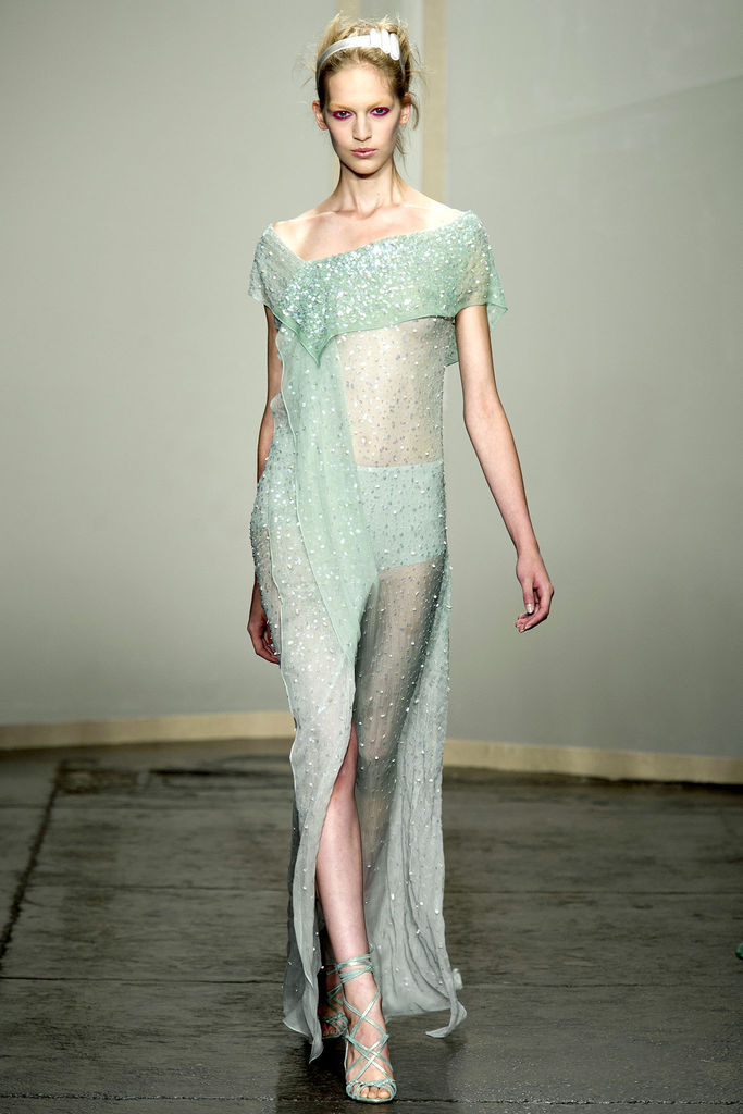 Los picos en fadas, chaquetas y levitas marcan las irregularidades de la colección, realizada en viscosa, chiffon y sedas, que a pesar de la riqueza de estas nos deja con un amargo sabor de boca.