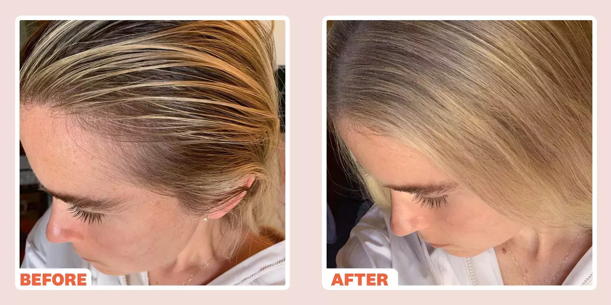 El champú en seco se inventó para mí. Realmente no puedo imaginarme la vida sin él. Tengo mucho pelo, pero es largo y fino (hola, enredos) y es naturalmente un rubio oscuro, pero tengo mechas más claras, así que naturalmente ya hace que mis raíces parezcan más oscuras, incluso cuando está limpio. Además, si añades a la ecuación mis muy productivas glándulas sebáceas, en el segundo día, mis mechones parecen haber intentado el "look húmedo" de Kim K, pero... No lo he hecho (ejemplo: mi foto de antes de abajo). Sí, mi pelo es probablemente tan propenso a la grasa como el que más, así que el champú seco está siempre a mano.