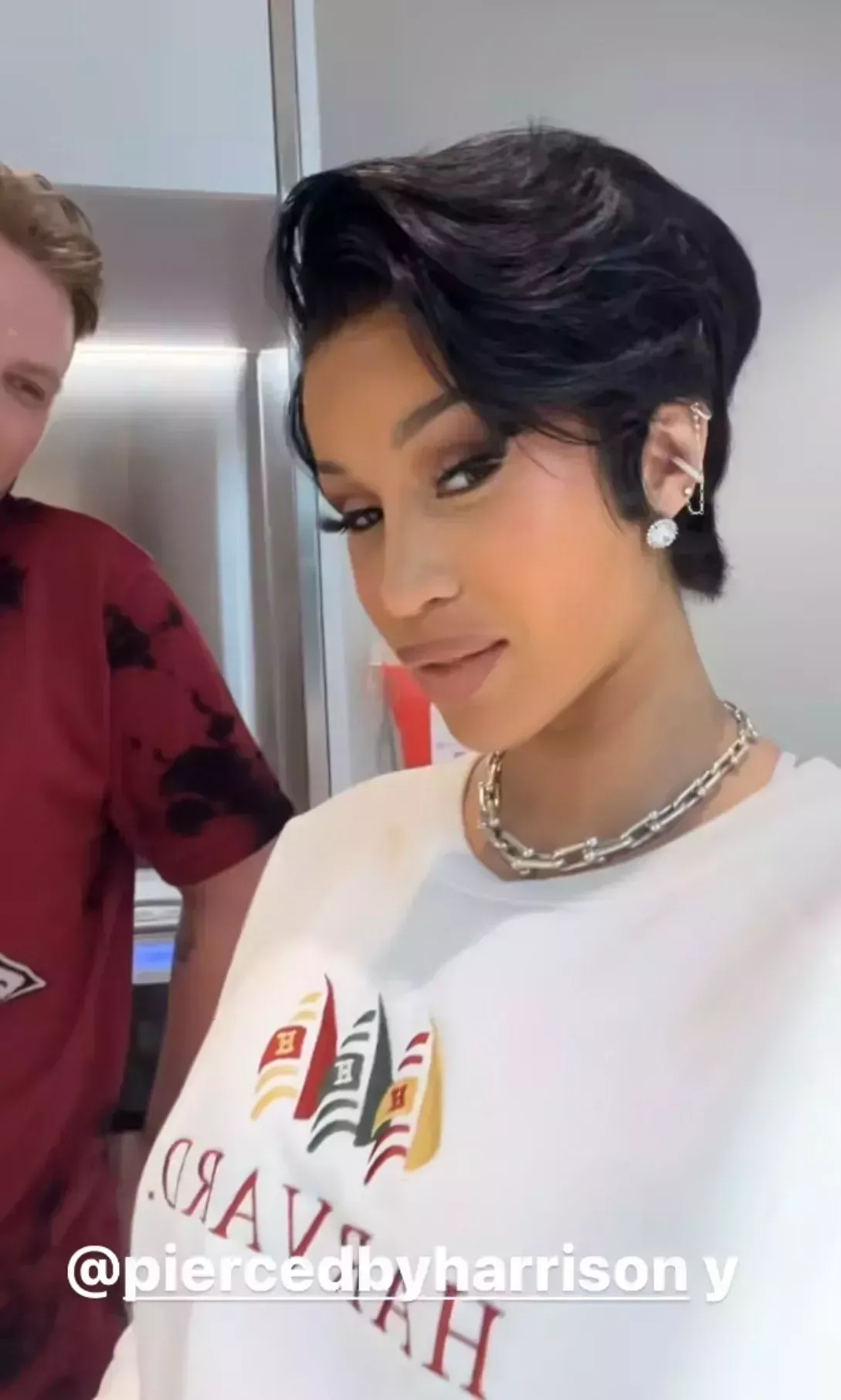 El corte pixie de Cardi B muestra a la perfección su nuevo piercing en la oreja