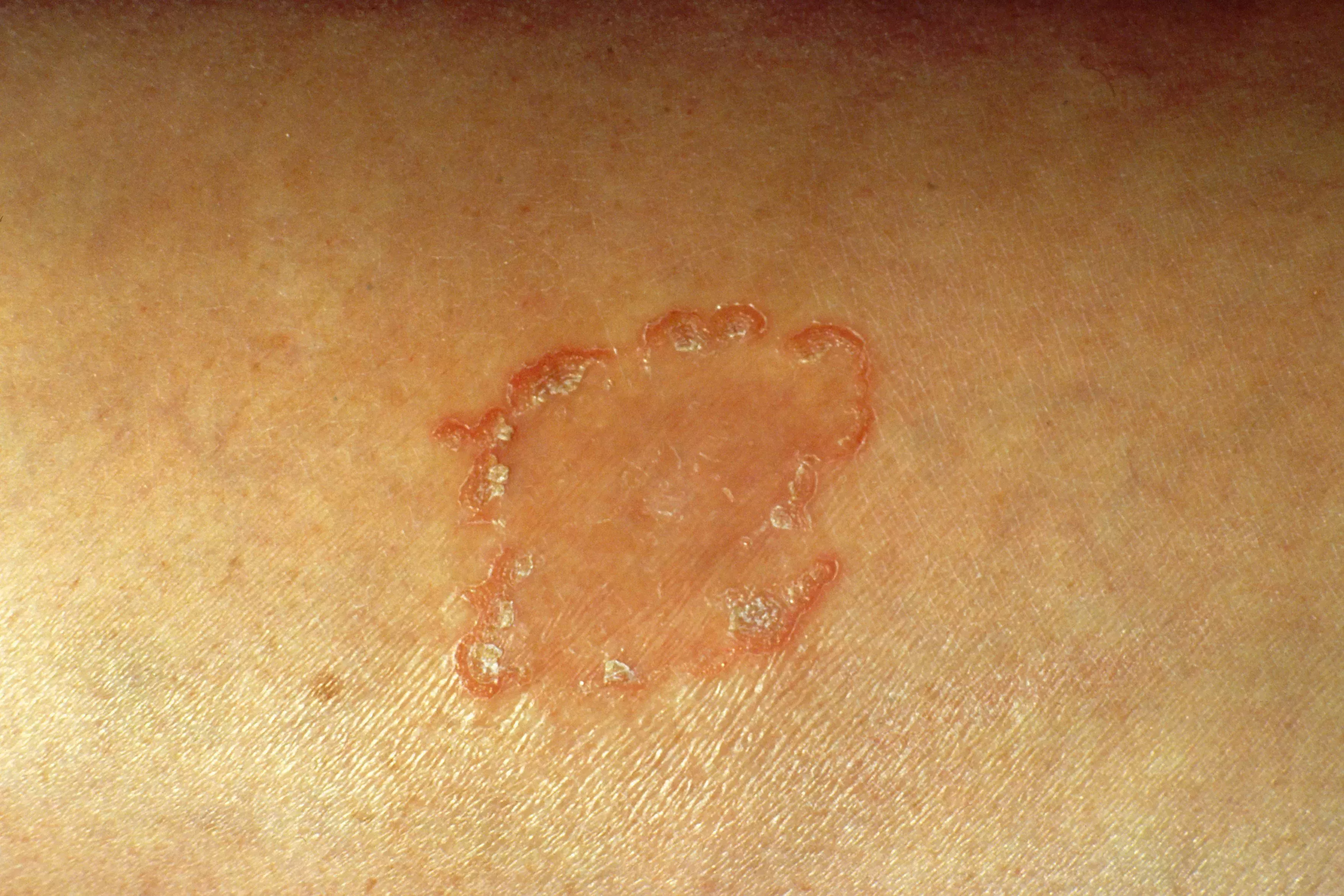Si la mancha roja tiene un aspecto circular, podría tratarse de tiña. La tiña es una infección por hongos que se presenta como una erupción circular, roja y con picor. Los hongos que la causan pueden vivir en la piel, las superficies y los artículos domésticos como la ropa, las toallas y la ropa de cama, según los CDC. Puede afectar a los pies, las palmas de las manos, la ingle o el cuero cabelludo.