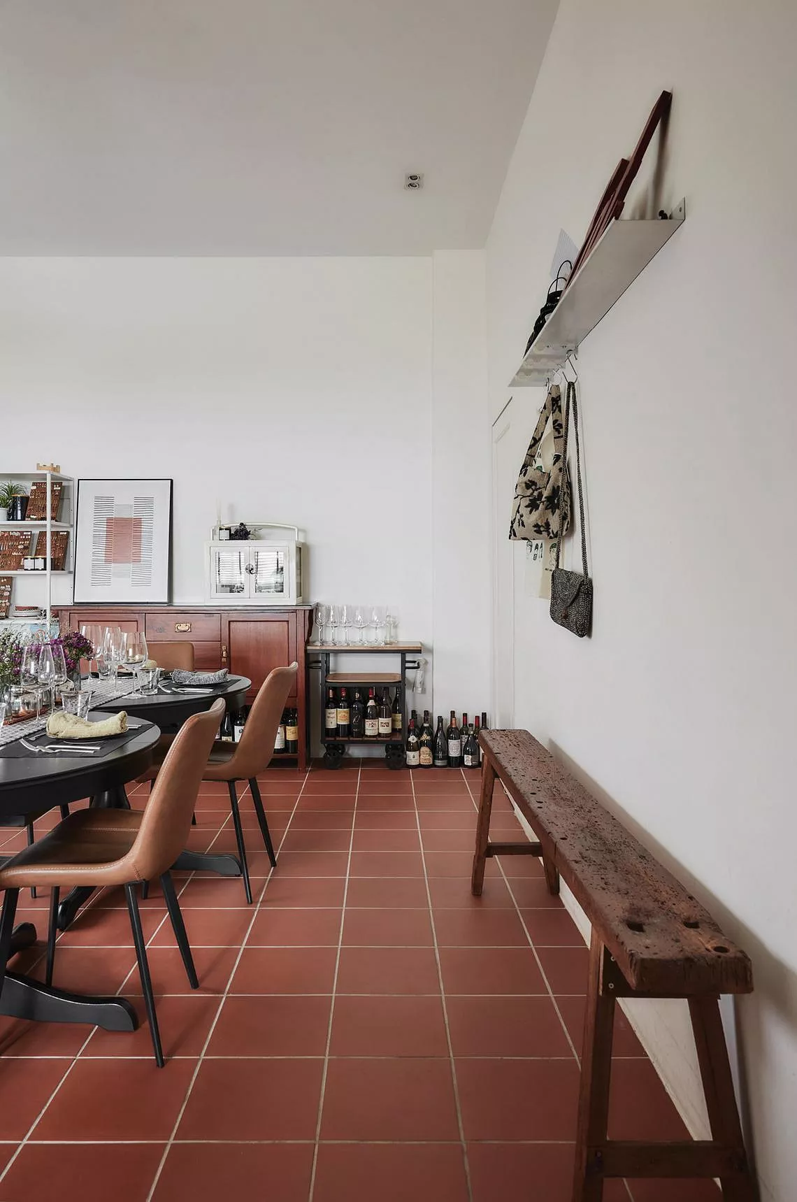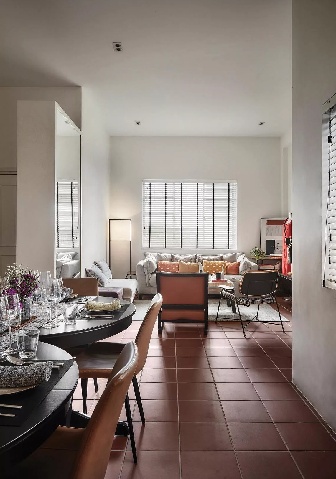 Las baldosas de terracota no solo crean una atmósfera cálida, sino que también son fáciles de limpiar. Alquilaron un apartamento de 130 metros cuadrados con dos habitaciones en Tiong Poh Road que se ajustaba perfectamente a su emprendimiento, que llamaron Fatt Leong Private Kitchen.