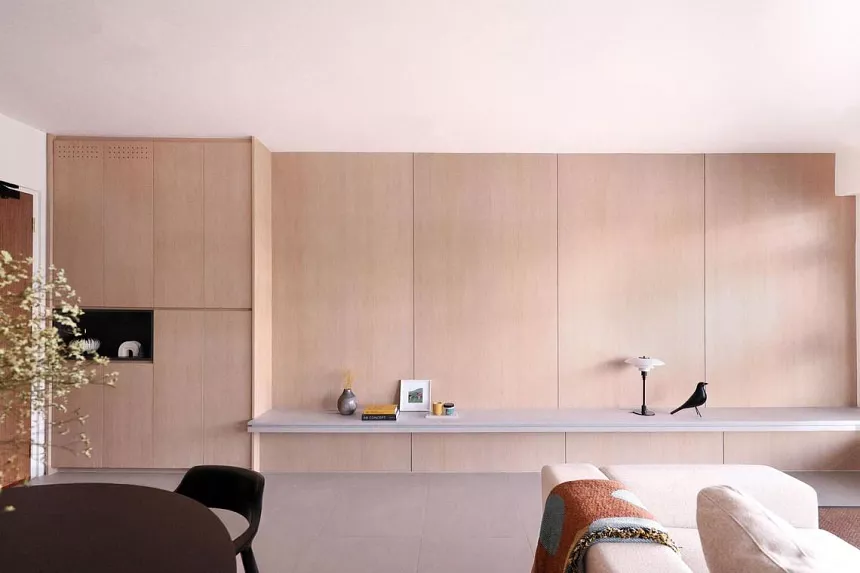 SINGAPUR – La diseñadora Valerie y su esposo Zhi Yuan optaron por el diseño Japandi para su hogar matrimonial, un apartamento de 110 metros cuadrados de cinco habitaciones en Sengkang East.