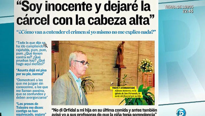El padre de Asunta Basterra asegura que es inocente y que no mató a su hija y lo reitera una y otra vez durante la entrevista al Correo Gallego, dejando bien claro que él no tuvo nada que ver con el asesinato de su hija. Además, declara que lo peor de esta situación no es el hecho de estar en la cárcel y de estar siendo juzgado por la calle como un asesino, sino la pérdida de Asunta, pues segura que es lo que más dolor le provoca.