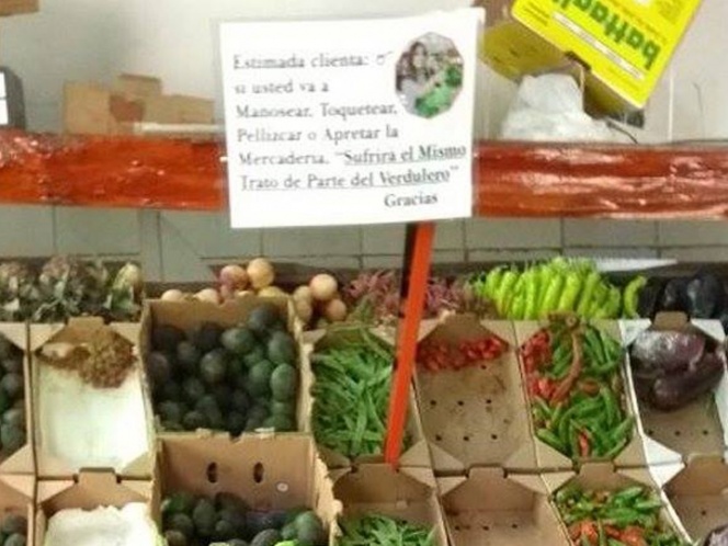 "Estimada clienta: si usted va a manosear, toquetear, pellizcar o apretar la mercadería, sufrirá el mismo trato del verdulero. Gracias”.