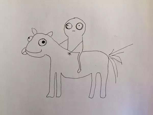Así que, en respuesta a la noticia de que Pellegrino hace su incursión en el mundo del arte digital con la NFT, DeRuiter nos hizo un dibujo de un hombre sobre un caballo: