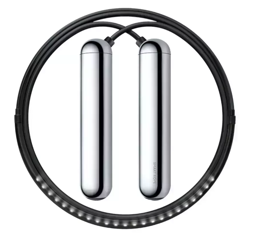Además, tiene una luz LED que puedes configurar para que parpadee con diferentes parámetros mientras saltas. Por ejemplo, puedes hacer que se ilumine el número de saltos mientras te ejercitas.