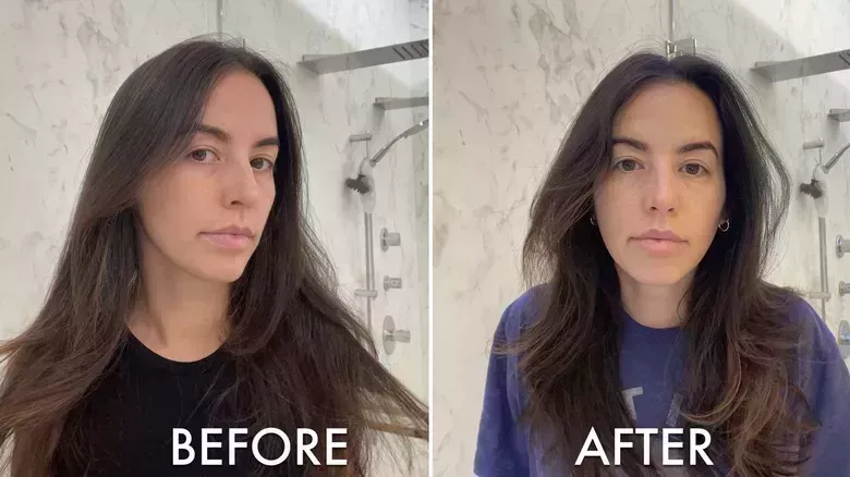 Renee Rodriguez, de POPSUGAR, también probó el truco y dijo que su pelo mejoró mucho. "Fue una gran mejora de lo que normalmente parecía después de días de no lavar y sólo el uso de champú seco", dijo. Ella lo describe como "un cambio de juego total" que le permitió pasar seis días sin lavarse el pelo.