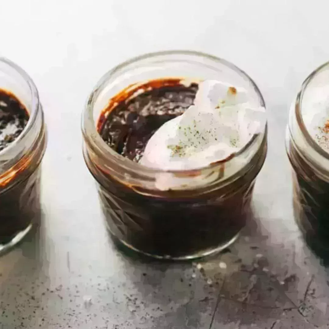 Endulzados sólo con zumo de granada, cacao en polvo y jengibre confitado, estos vasos de postre se asientan sobre una base de pistachos ricos en proteínas.
