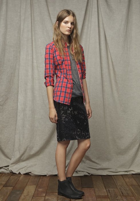 Kurt Kobain por arriba, falda de secretaria de Mad Men y Chelsea Boots de mod por abajo. Toma ya. ¿No querías mezcla? pues toma tres tazas (o prendas). Lo vemos y no nos acostumbramos, creemos que el mezclaje ha llegado demasiado lejos.