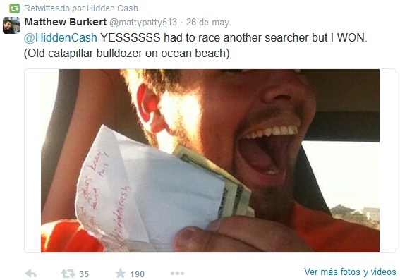 Por el momento, ya han sido varios los afortunados que se han hecho con el suculento botín. Lo único que tiene que hacer quien lo encuentre es publicar la foto con su tesoro y mencionar a @HiddenCash, la cuenta desde la que se pergeñó esta idea. Además, especifica que cierta cantidad debe ser destinada a fines solidarios.