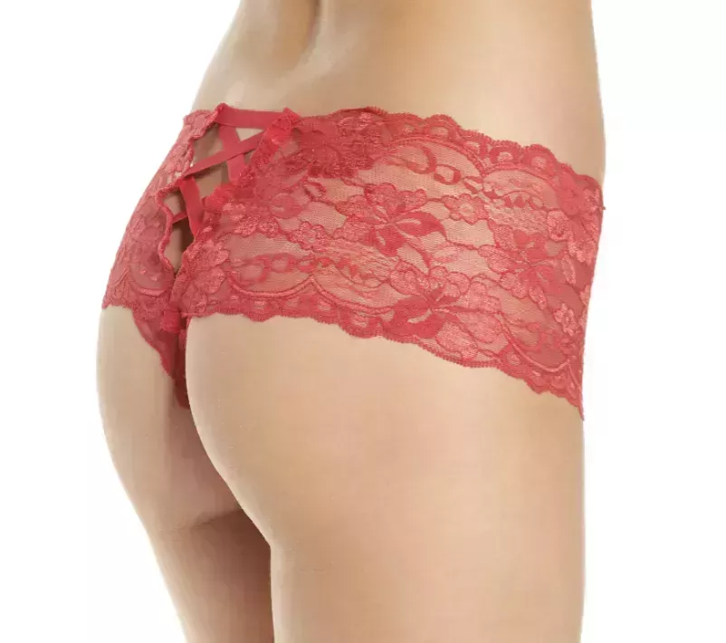 La marca de lencería sexualmente positiva Anya Lust se basa en el autoplacer femenino, y esta sexy braguita es el mejor ejemplo. Disponible en las tallas 1x a 4x, el encaje elástico y la espalda con tiras de este tanga sin entrepierna están prácticamente pidiendo ser emparejados con una comedia romántica y una noche de vino.