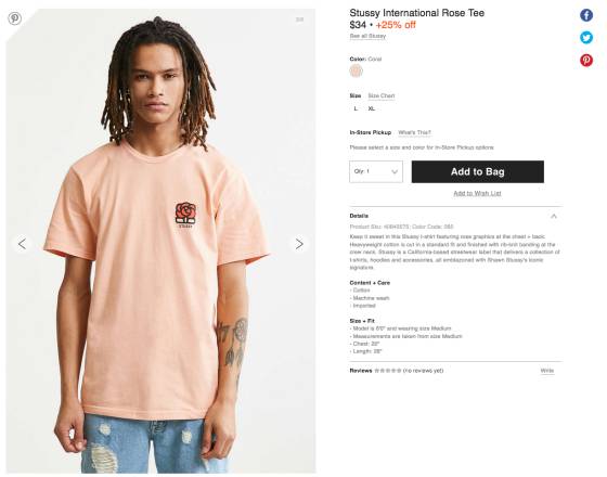 Por el momento, y debido a la gran polémica generada en las redes sociales a partir de la camiseta, la prenda ha sido retirada de la tienda online de Urban Outfitter, el portal donde se suele distribuir las prendas de esta marca. En la web de la marca Stussy, aún está disponible.