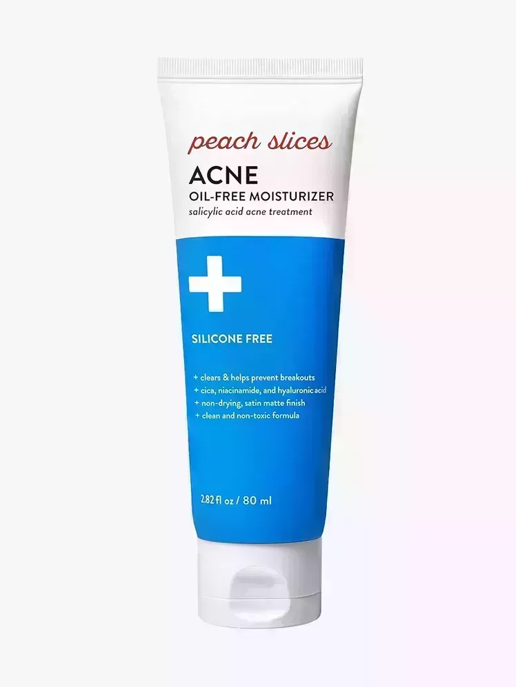 - Mejor crema hidratante de farmacia para piel propensa al acné: Peach Slices Acne Oil-Free Moisturizer, $12