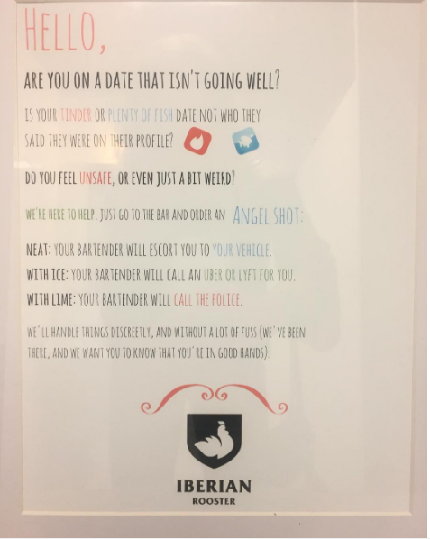 Para salvar a las mujeres de estas citas por las que nadie quiere pasar, un bar de San Petersburgo (Florida) ha tenido una genial idea. En el baño de chicas, los empleados han colocado el siguiente cartel: “Hola, ¿estás en una cita que no va bien? Si te sientes incómoda, puedes pedir un Angel Shot”. A continuación, el cartel explica las variantes de esta bebida ficticia y sus significados. Por ejemplo, si pides este chupito con hielo, el camarero pedirá un taxi para que puedas irte. Si lo pides con lima, llamará a la policía.