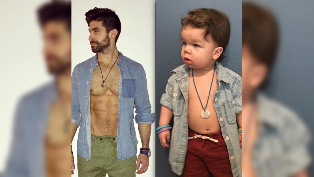 Modelo y sobrino posando en la misma pose. El modelo Aristotle Polites comparte fotos de él y su sobrino en la misma pose y son tan sexis como adorables.