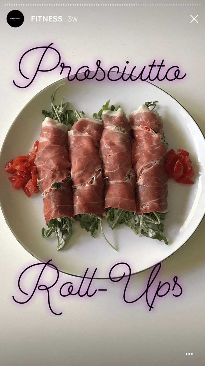 Ingredientes: Uno de los snacks favoritos de Berry, rollos de prosciutto y rúcula de "Ketogenic Cooking", contiene solo prosciutto, rúcula, tomates, huevos duros y aderezo de diosa verde.