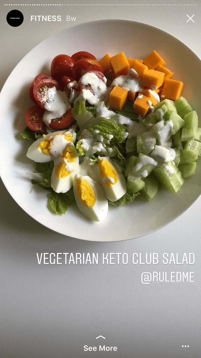 Ingredientes: Berry encontró esta receta de ensalada club keto vegetariana en Ruled.Me. Contiene huevo duro, tomates, pepinos, queso cheddar en cubos y lechuga romana. El aderezo se hace con crema agria, mayonesa, ajo en polvo, cebolla en polvo, perejil seco y leche.