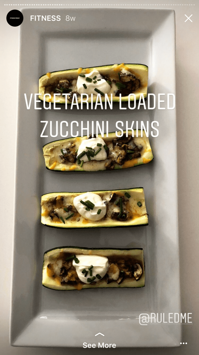 Ingredientes: Para un almuerzo más contundente apto para keto, prueba las pieles de calabacín cargadas vegetarianas de Ruled.Me. Los botes de calabacín asados están rellenos con queso pepper jack, queso cheddar, crema agria, cebollinos picados y champiñones cocinados con aceite de oliva, pimentón ahumado, sal y salsa Worcestershire.