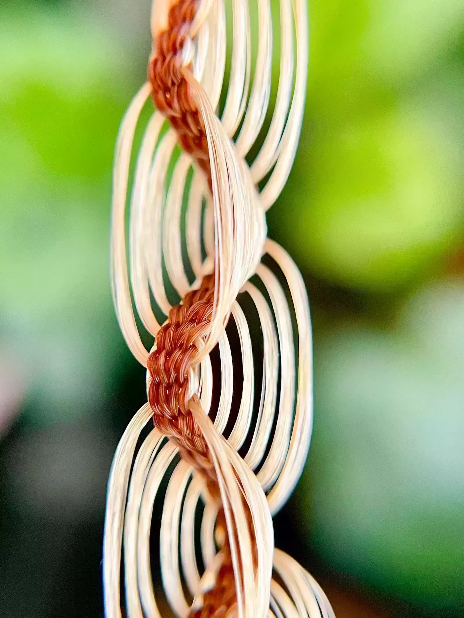 En general, sin embargo, estos artistas han encontrado una gran comunidad de apoyo en Internet, y la demanda de su trabajo no hace más que aumentar. Hansen fabrica tablas de trenzado y cada vez que pone a la venta un lote de ellas, se agotan casi de inmediato. "Está creciendo muy rápido", dice. "No doy abasto". Lane y Schneck han dejado de aceptar encargos hasta que puedan ponerse al día con su carga de trabajo actual. La lista de espera de Cross es de casi 300 personas. El precio de las piezas varía mucho en función de varios factores, como la experiencia del artista, la complejidad y el nivel de personalización de la pieza, y otros materiales añadidos. Por ejemplo, las flores para el pelo de Schneck, más pequeñas y prefabricadas, cuestan entre 20 y 30 dólares, mientras que las joyas personalizadas de Cross cuestan a partir de 900 dólares.