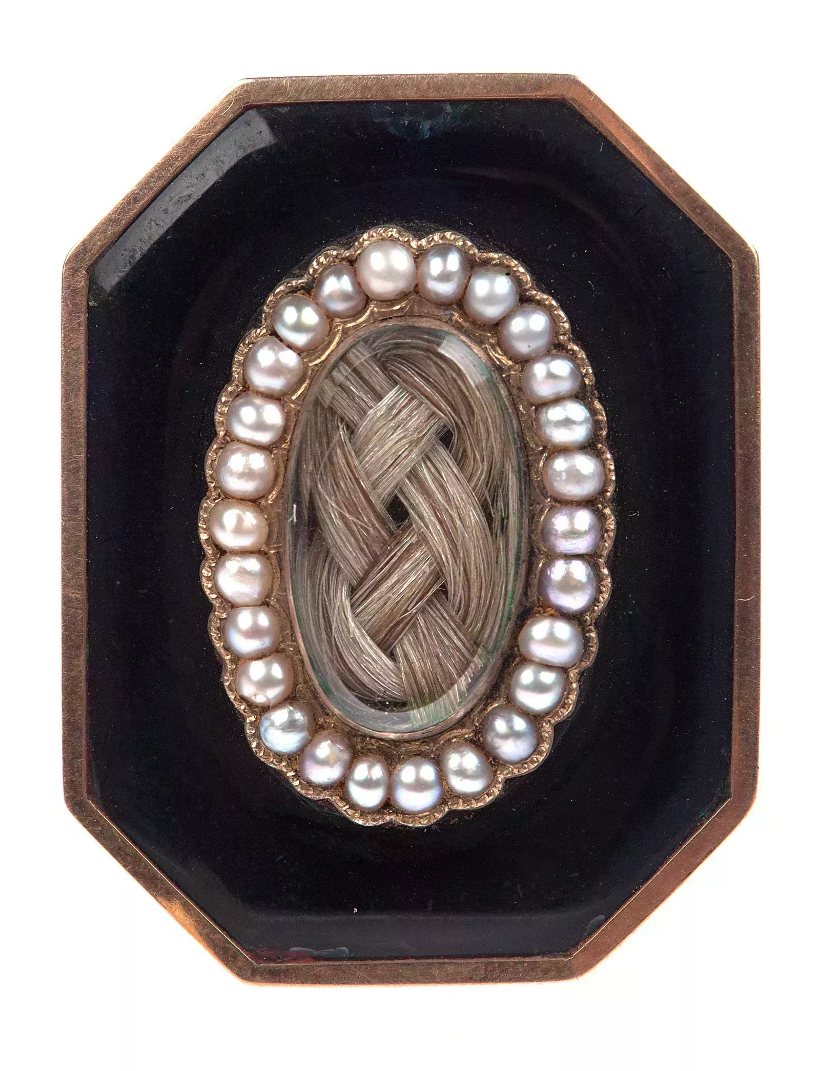 Las joyas de luto se introdujeron en la cultura occidental en el siglo XVI, cuando se puso de moda llevar piezas de memento mori (que significa "recuerda que debes morir") decoradas con "esqueletos, ataúdes, calaveras, gusanos y huesos cruzados", según escribió la historiadora Ann Louise Luthi en su libro Sentimental Jewellery (Joyería sentimental). Con el tiempo, el público dejó de lado estos recordatorios generales de su inevitable desaparición y se decantó por piezas que conmemoraban a personas concretas ya fallecidas. ¿Y qué mejor manera de recordar a un ser querido fallecido que conservando una parte literal de su cuerpo en una pieza de joyería?
