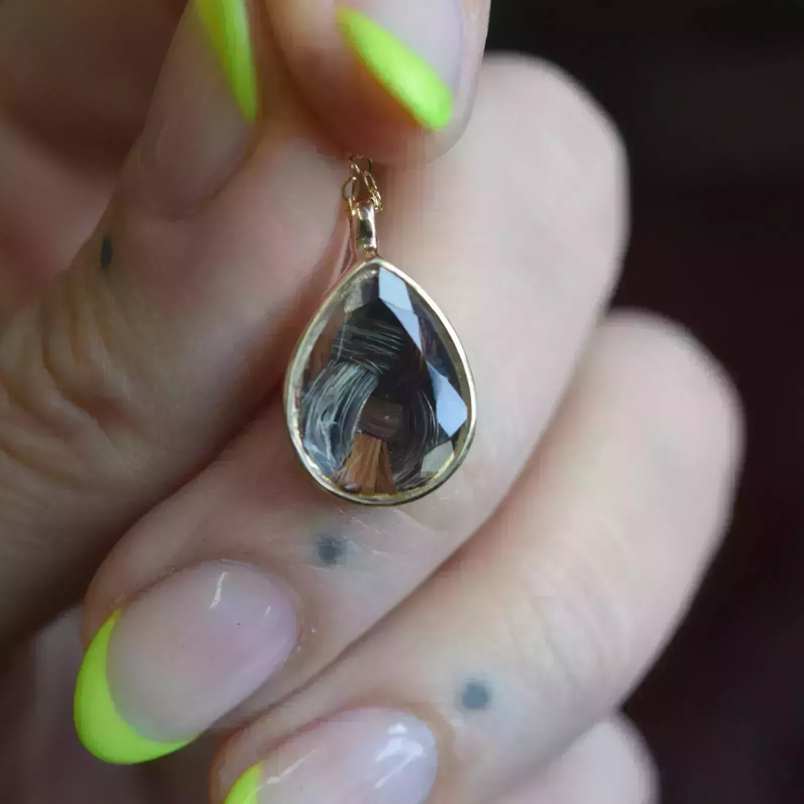 Aunque las joyas de luto suelen despertar la fascinación más morbosa, los cuatro artistas afirman que también reciben a menudo peticiones de muestras de amor personalizadas para intercambiar entre los vivos. La misma gente que comenta "¿Eso es pelo? Qué asco" en un vídeo viral de peluquería probablemente no pestañearían ante la práctica tan común de guardar un mechón del primer corte de pelo de tu bebé. Ahora, en lugar de meter esos mechones en un sobre, cada vez más gente los envía a artistas para que los incorporen a joyas. Las piezas hechas con el pelo de una mascota querida también son peticiones habituales, aunque Cross señala que el pelaje puede ser más difícil de trabajar. "No se deja domar", dice.
