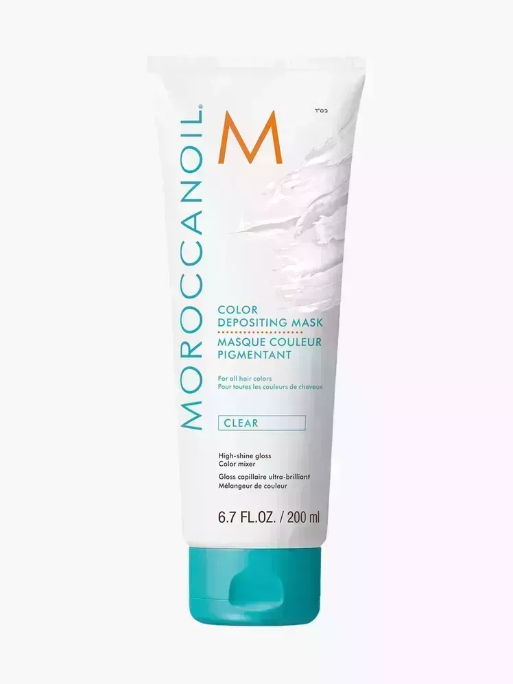 - Lo mejor para el cabello seco: Moroccanoil High Shine Gloss Color Depositing Mask Clear, $30