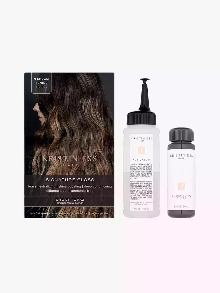 Por qué merece la pena: Uno de los productos elegidos por Toth, el Rita Hazan Ultimate True Shine Gloss está formulado con vitamina B5, pantenol y proteína de seda para mantener el color, la hidratación y el brillo durante semanas. Elige entre tres tonos -Clear, Breaking Brass y Sunkissed- para un tratamiento sin complicaciones en la ducha. (Para obtener los mejores resultados, haz coincidir el tono con el tono más claro de tu cabello.) Aclara enseguida o déjalo actuar hasta 20 minutos, dependiendo de lo intensos que quieras que sean los resultados.
