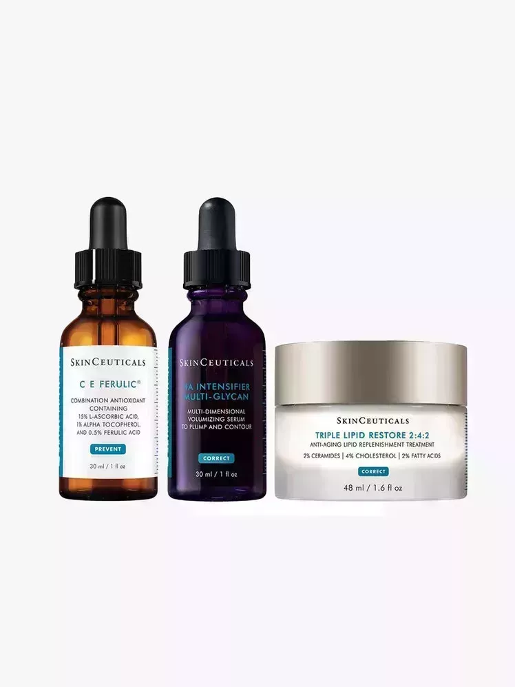El legendario C E Ferulic ha ganado tres sellos rojos a lo largo de su existencia, y lo encontrarás en el SkinCeuticals Best Sellers Gift Set, junto con otros dos favoritos de los editores. Triple Lipid Restore 2:4:2 es un hidratante centrado en la ceramida que ayuda a rellenar la piel, y HA Intensifier Multi-Glycan es un sérum ganador del premio Best of Beauty que aumenta los niveles de ácido hialurónico de la piel y, por lo tanto, ayuda a mantener la hidratación durante más tiempo. ¿Un trío de poder?