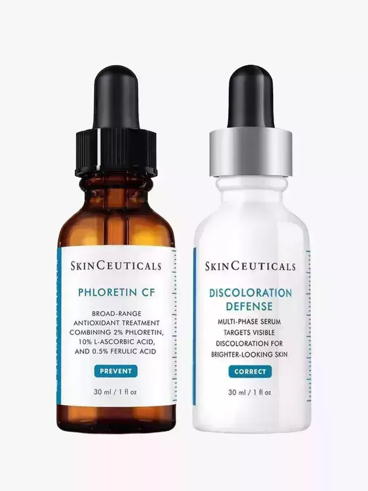 Acaba con la hiperpigmentación y las cicatrices del acné con la ayuda del Dúo Decoloración. Phloretin CF, ganador de dos premios Best of Beauty, no es un sérum de vitamina C cualquiera, ya que el ingrediente iluminador está acompañado de phloretin y ácido ferúlico para una estabilización adicional. A continuación, pasa a la defensa de las manchas oscuras con Discoloration Defense. Este corrector de manchas trata las marcas persistentes del acné gracias a su potente elixir de ácido kójico, niacinamida y ácido tranexámico.