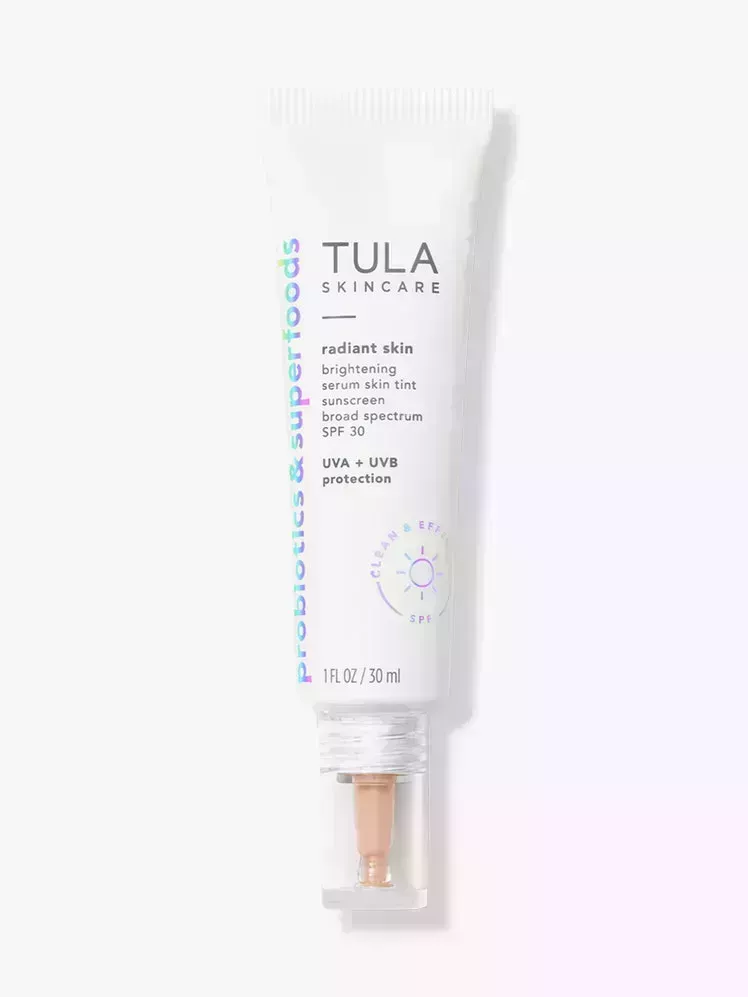 Nos encanta ser creativos a la hora de añadir más SPF, así que nos hizo mucha ilusión cuando Tula nos presentó el Radiant Skin Brightening Serum Skin Tint SPF 30. Este sérum ligero está disponible en 30 tonos y proporciona una cobertura ligera y modulable, además de protección frente a los rayos UV.