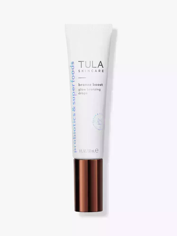 Si no quieres renunciar a tu bronceado veraniego este otoño, las gotas bronceadoras Bronze Boost Glow de Tula están aquí para ayudarte. Su fórmula aporta a la piel un brillo bronceado y, al mismo tiempo, ingredientes hidratantes y luminosos como los péptidos de cobre, el ácido hialurónico y la niacinamida.