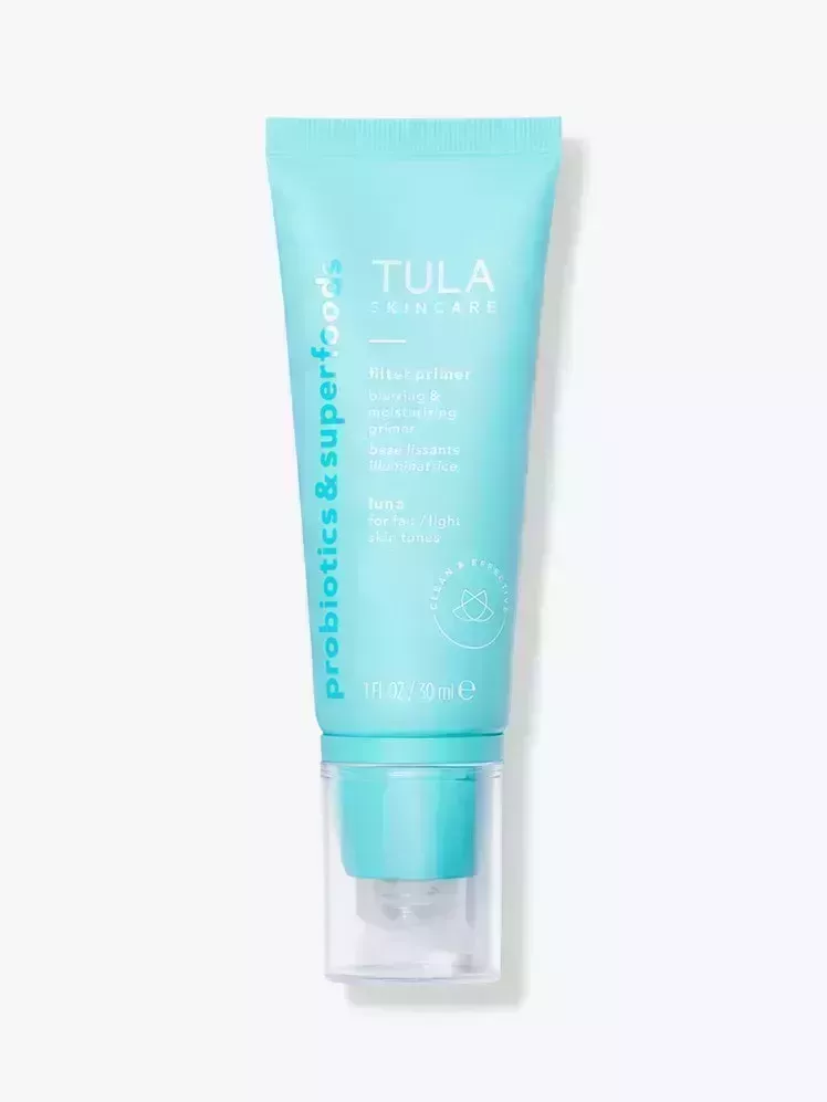 Tula's Blurring & Moisturizing Filter Primer aporta un precioso brillo bajo el maquillaje, con la ayuda del regaliz, el romero, la manzanilla, el arbusto de las mariposas y las proteínas de la leche. Con el tiempo, conseguirás una mayor luminosidad y un tono más uniforme.