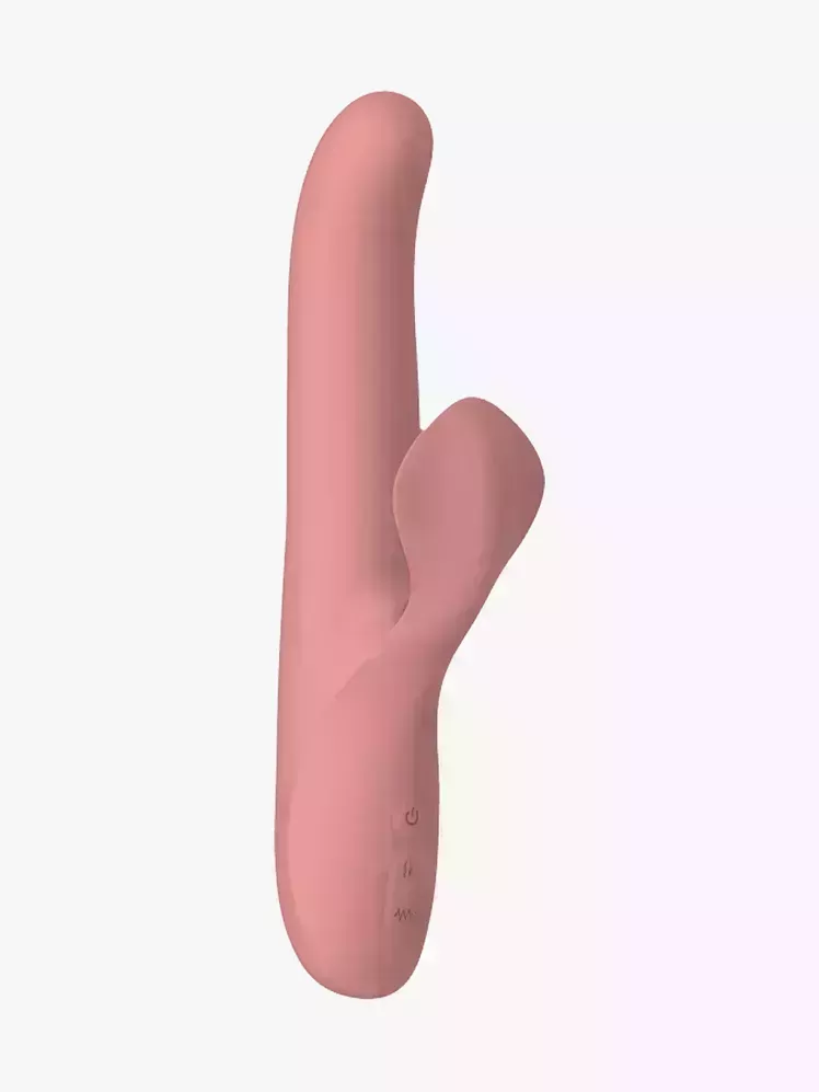 Por qué merece la pena: A veces, las vibraciones no son suficientes, y ahí es donde entra en juego el Thrust de By Bellesa. No se trata de un vibrador conejito corriente, sino de un propulsor. Mientras su masajeador más pequeño te hace cosquillas en el clítoris con vibraciones que te hacen doblar los dedos de los pies, su grueso eje te empuja para proporcionarte una de las estimulaciones duales más intensas que jamás hayas sentido.