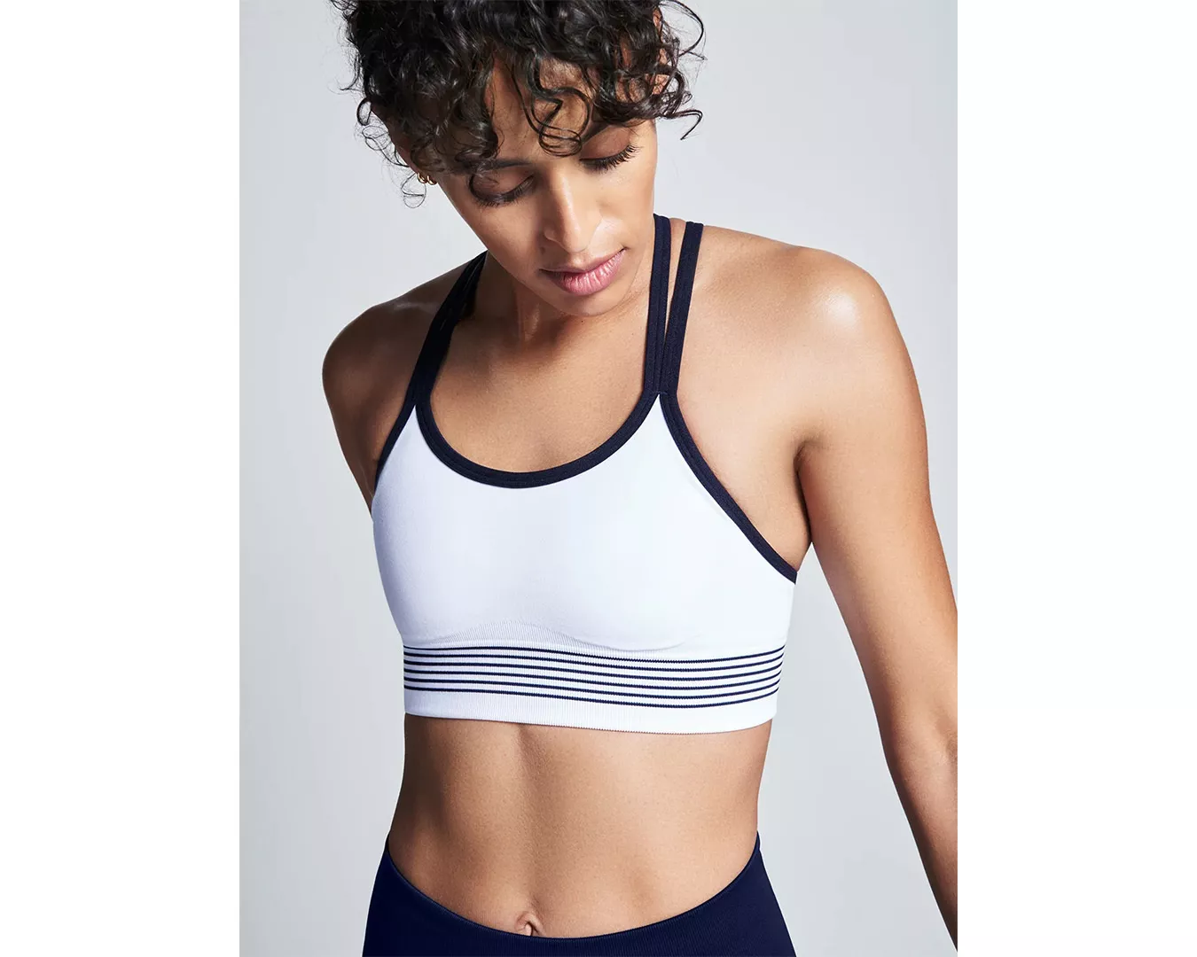Para completar el conjunto de ejercicio, se emparejó con el sujetador Blade de la marca. Hecho de poliéster reciclado al 100%, este sujetador de ajuste compresivo tiene paneles de alta densidad en ambos lados para soporte.