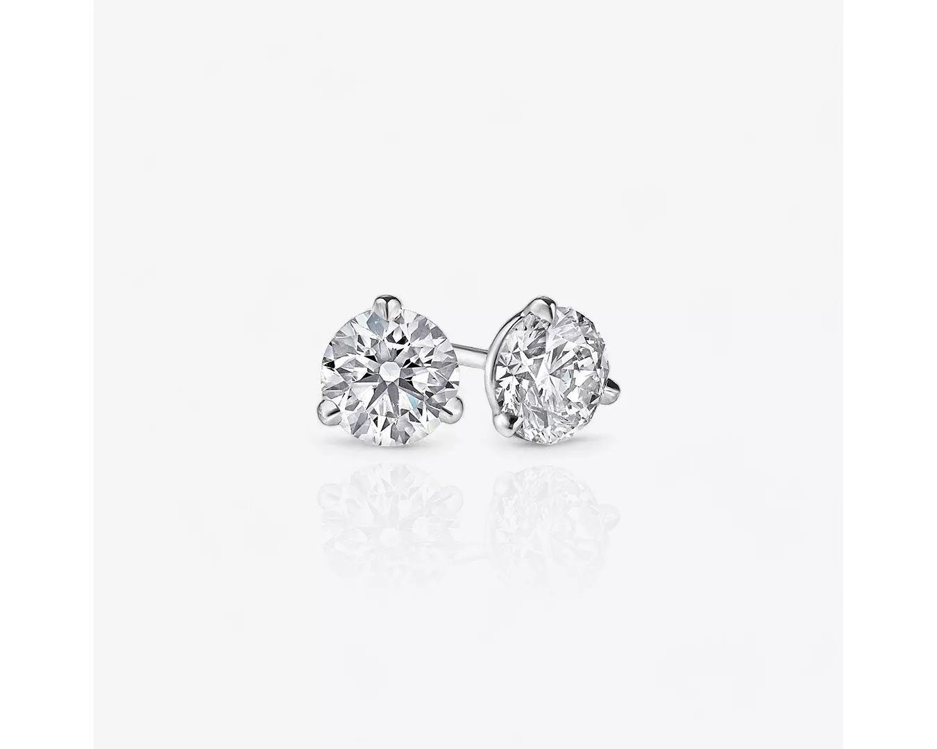 Ritani Lab Grown Three-Prong Diamond Stud Earrings Set in 14k White Gold