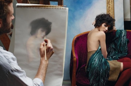 Karl, el omnipresente y omnipotente director de la firma, nos presenta a Anja Rubik en esta campaña de otoño-invierno rodeada de pinceles, caballetes y lienzos.