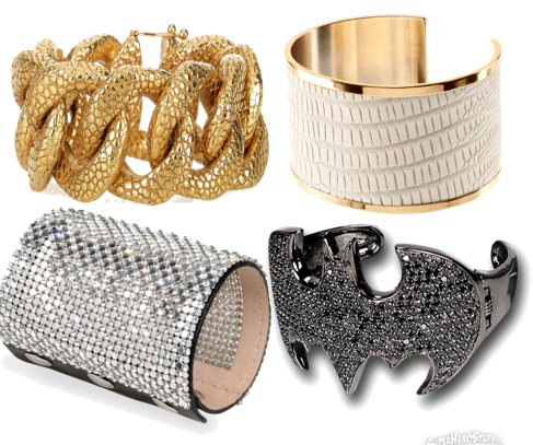 Te proponemos una de eslabones dorados de Yves Saint Laurent. Si sus anillos de piedras tuvieron un tremendo éxito los años anteriores, este brazalete parece que va a correr la misma suerte. Una versión más barata es, sin duda, la de H&M que lleva una parte de imitación de piel de cocodrilo. Otro brazalete, mucho más ancho es el de Giuseppe Zanotti, éste esta entero cubierto de pequeños brillantitos y es perfecto para estilismos sencillos. El último brazalete que te proponemos es el más divertido y freak. Tiene el símbolo de Batman y son las alas del murciélago las que abrazan la muñeca del que lo lleva.