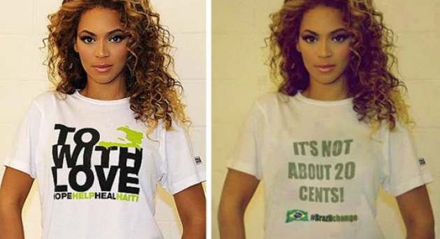 La campaña a ha sido todo un éxito y se ha viralizado a la velocidad de la luz. En las imágenes vemos a una Beyoncé con camiseta blanca de la que se ha borrado el texto original ("to Haiti with love" que lució la cantante cuando se produjo el tsunami de Haití) y en el que ahora se puede leer "It's not about 20 cent" (no sólo 20 céntimos) que hace referencia a los 20 céntimos de subida que ha tenido el transporte y que ha sido la gota que ha colmado el vaso de la paciencia de los brasileños.