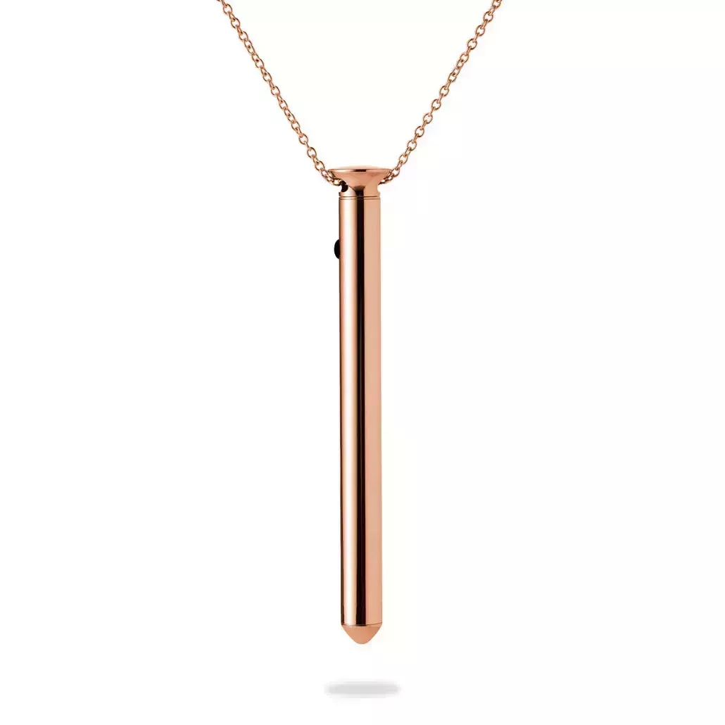 Combinando forma y función, este vibrador está hecho para ser visto. El bonito colgante presenta un patrón de ondas ondulantes de distintas intensidades y está disponible en oro rosa, negro y chapado en oro de 24k.