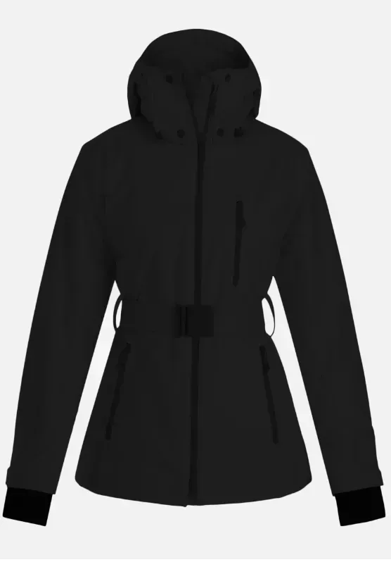 Luce un look chic desde las pistas hasta el après con este elegante conjunto negro. La chaqueta con cinturón crea una favorecedora silueta ajustada y acampanada.