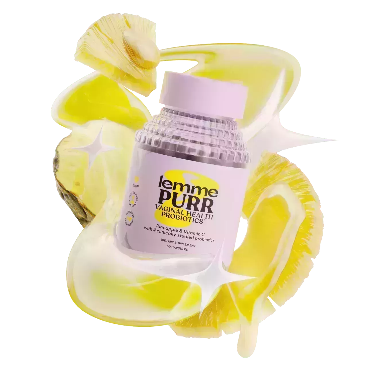 Trata bien a tu gatita con estas cápsulas veganas para la salud vaginal. Lemme Purr contiene una mezcla de extracto de piña y seis mil millones de UFC por porción de probióticos clínicamente estudiados y centrados en las hembras que favorecen el equilibrio del pH, la salud vaginal, el olor saludable, la salud del tracto urinario e incluso el sabor. Me-ow.