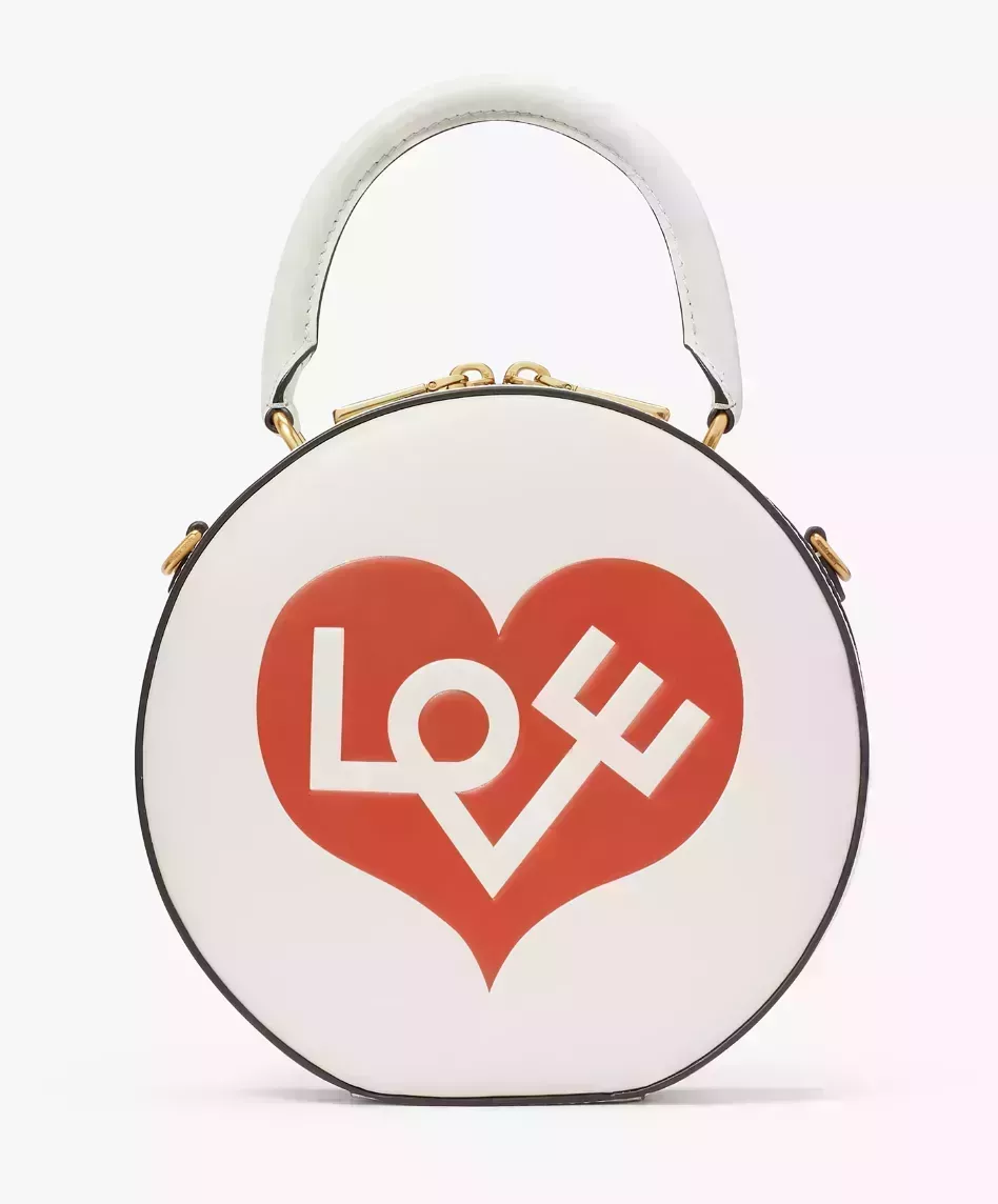 Con el famoso estampado Love del artista Alexander Girard, este adorable bolso es perfecto para San Valentín y más allá. Llévalo con el asa superior o utiliza la correa incluida para llevarlo cruzado.