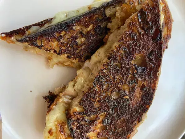 - Retire el sándwich de la sartén cuando el queso se haya derretido uniformemente y ambos lados estén bien tostados.