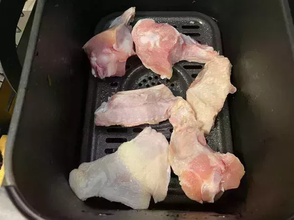 No hace falta que prepares una marinada o un aliño seco para el pollo. Y no tienes que esperar a que se descongele nada: si tus alitas están congeladas, puedes mantenerlas fácilmente en la freidora de aire durante más tiempo.